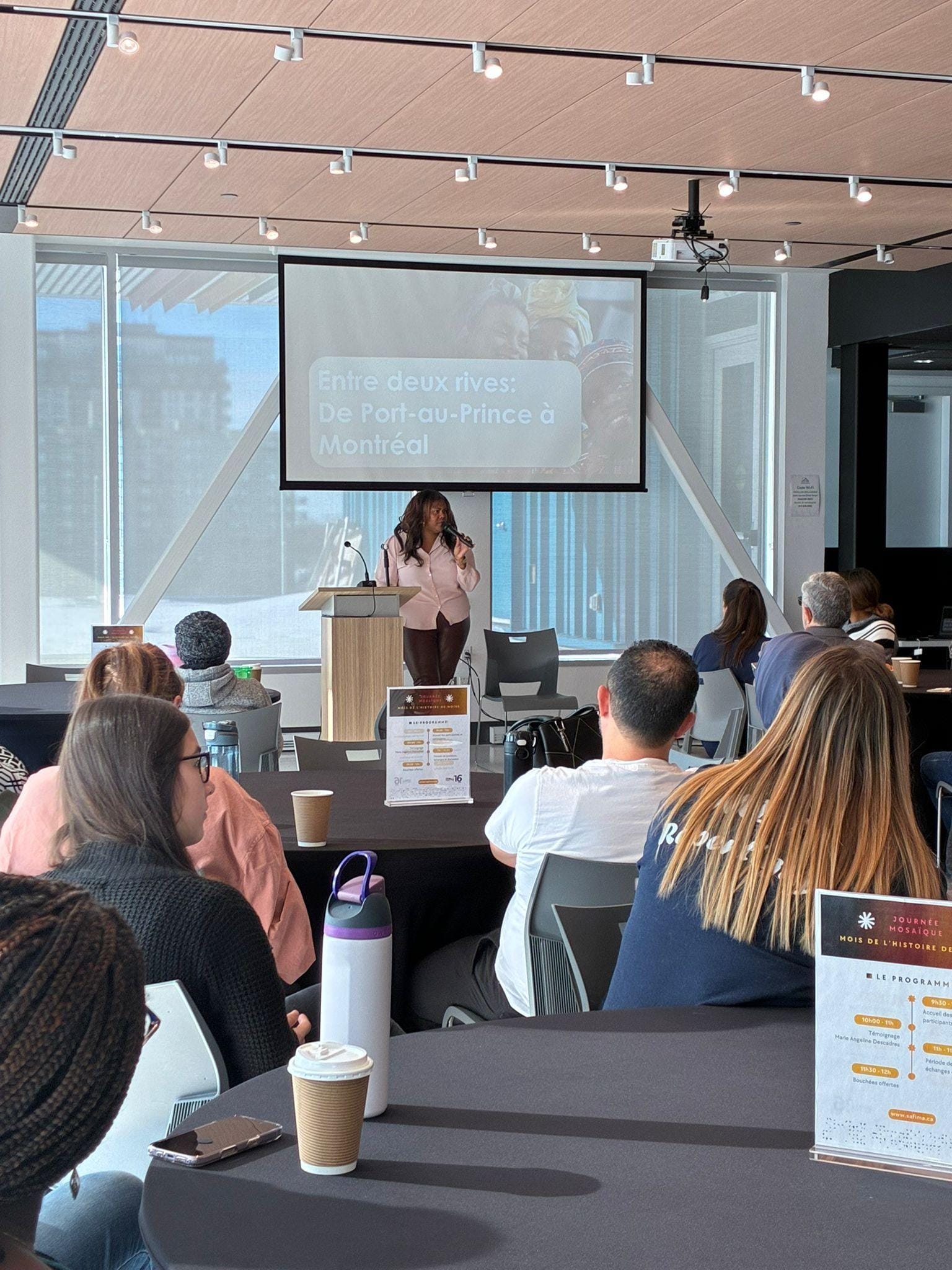 Mme Descadres a partagé un témoignage authentique et inspirant sur son parcours d’intégration au Québec. À travers ses expériences, ses défis, ses essais et ses erreurs, elle nous a invités à un voyage riche en émotions, en apprentissages et en résilience.